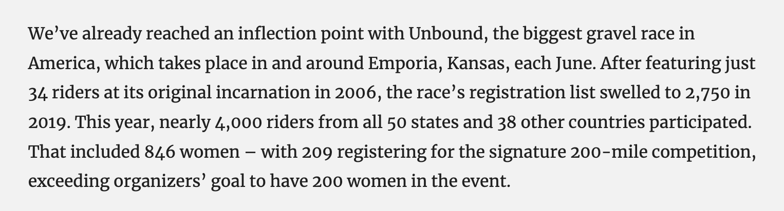 With Unbound Gravel (the unofficial gravel racing world championships) this weekend and Netflix’s Tour de France documentary Series Unchained debuting next week, now’s a good time to bring back my Global Sport Matters feature from last September on whether the bike racing world can capitalize on the pandemic cycling boom. If you don’t already know about or understand the booming popularity of Unbound, well, here you go.