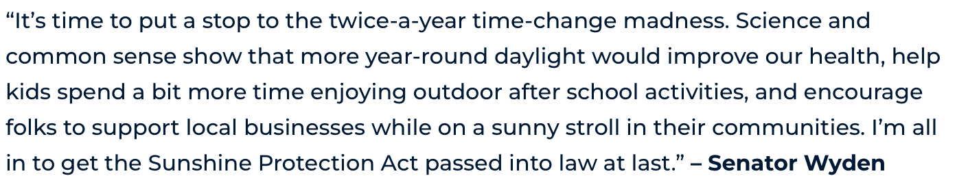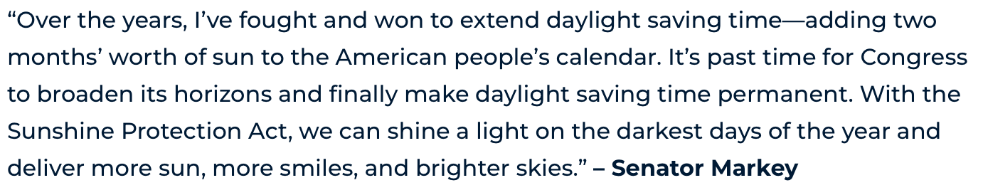 But we’re not talking about changing the tilt of the Earth and actually giving ourselves more daylight hours. Although, reading through the quotes of support for the bill from other Senators makes it seem like some of them may think that is the case.